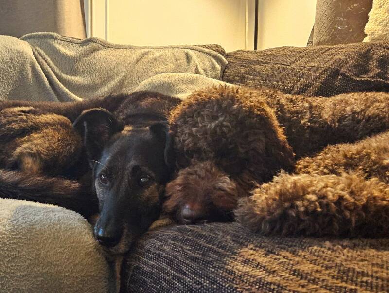 Inmiddels is Finn ruim 1 jaar en zie je hoe zo’n mooie hond het wordt. Lange benen, een mooie vacht, amberkleurige ogen en een mooie bouw. Het is een grote hond die het heerlijk vindt om te knuffelen en daarnaast veel plezier maakt met de andere 4 honden (Lou, Mae, Vida en Ayla die thuis z’n speelmaatje is) Door z’n mooie lange benen is ie erg sportief en beweeglijk.